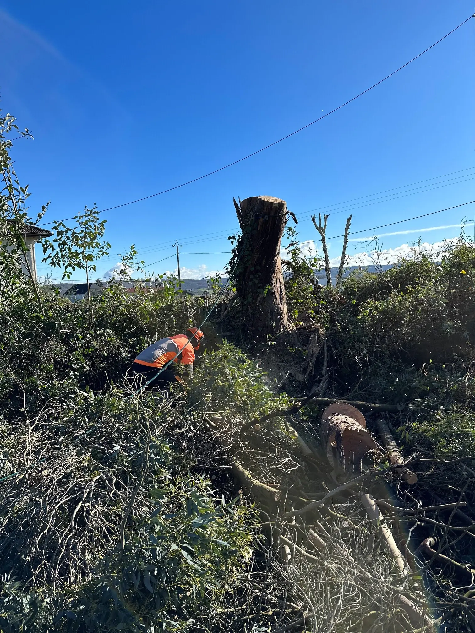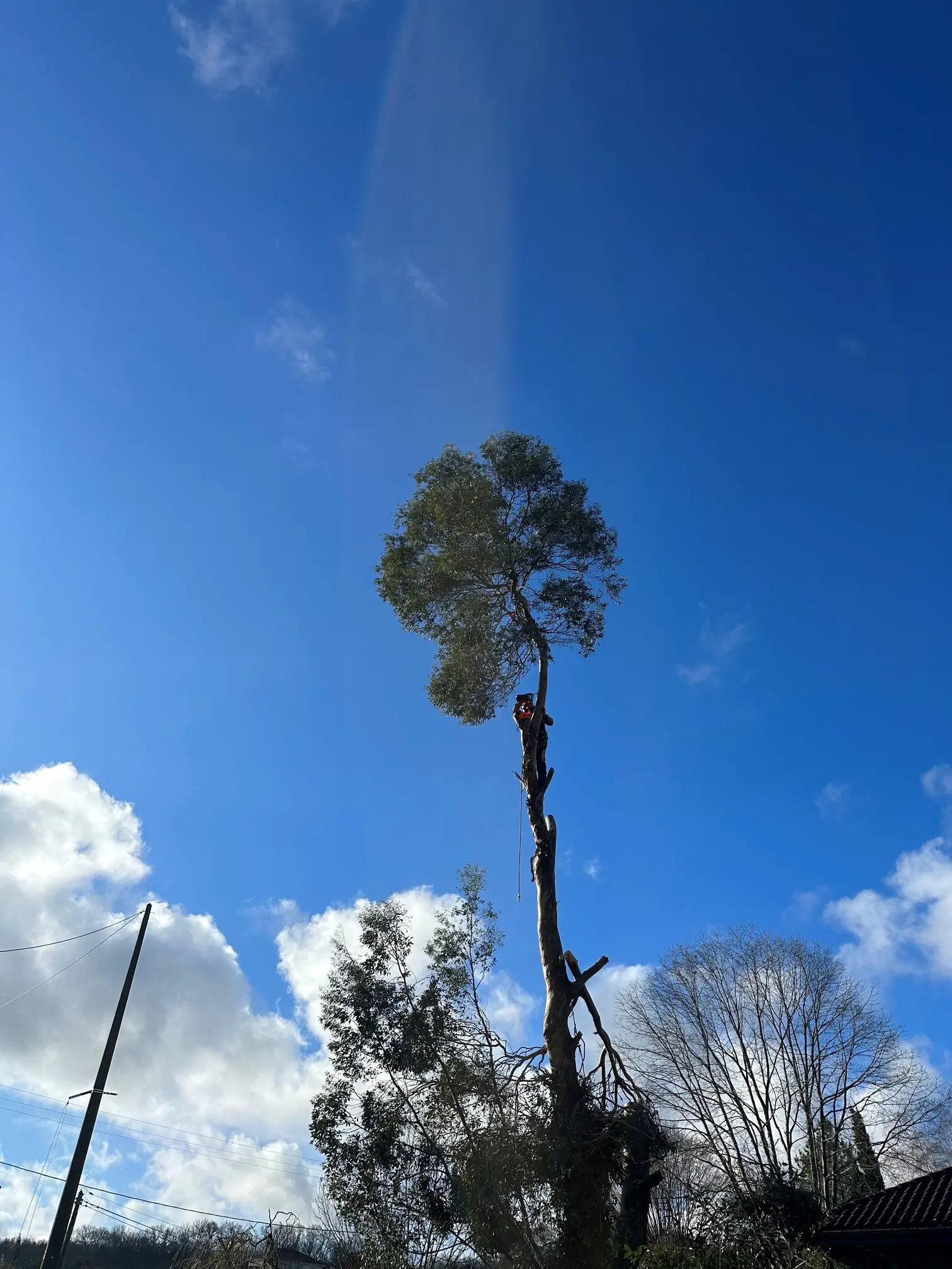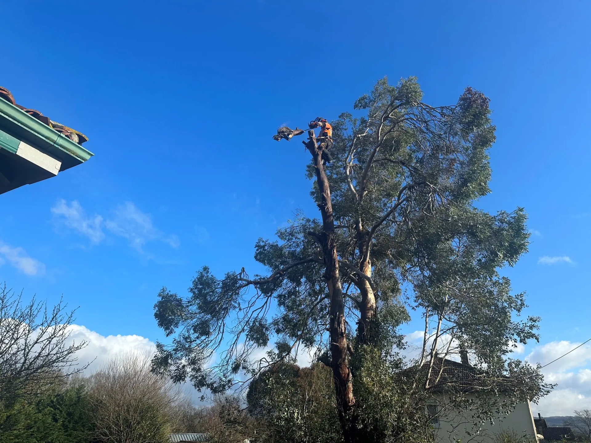 Lors de cette intervention, nous avons réalisé l’abattage d’un eucalyptus par démontage afin que l'eucalyptus se sépare en deux. Ces deux parties ont donc été abattu.