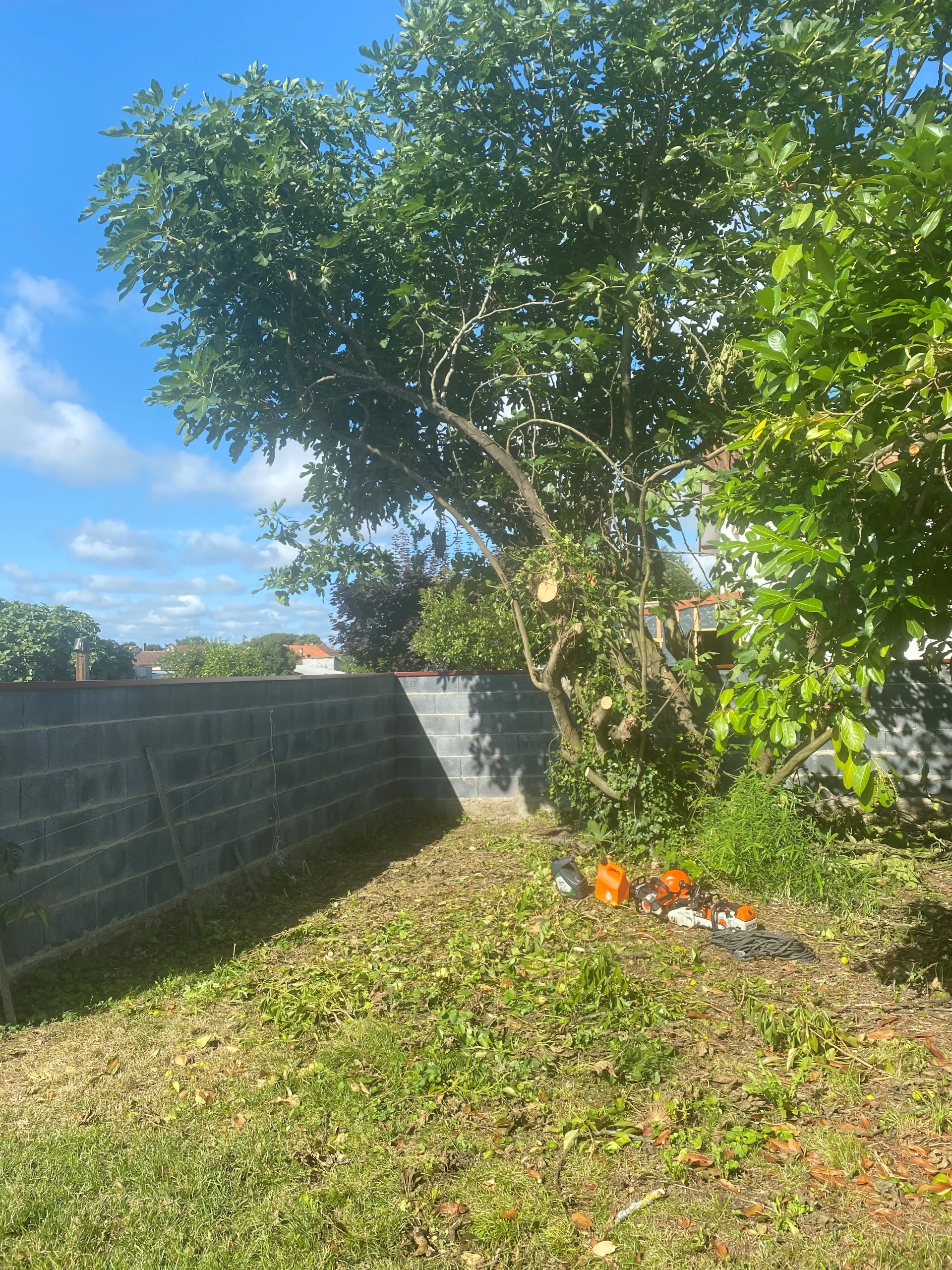 Intervention et élagage d'un arbre dans un jardin à proximité de Tarbes