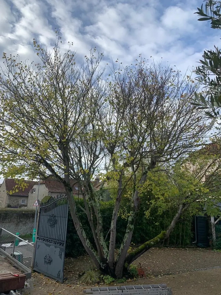Lors de cette intervention, Osé Laffont a réalisé la suppression de deux branches de l'arbre, la taille sur la partie haute ainsi que l’évacuation des déchets verts, le débitage et la mise en place de bois.