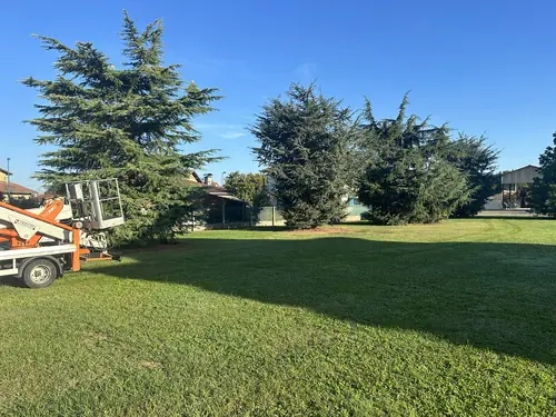 Lors de cette intervention, nous avons réalisé l’élagage des arbres avec nacelle, en raison de la hauteur impressionnante de l'arbre. L’intervention a compris la taille et l’élagage de plusieurs arbres, de type conifère.