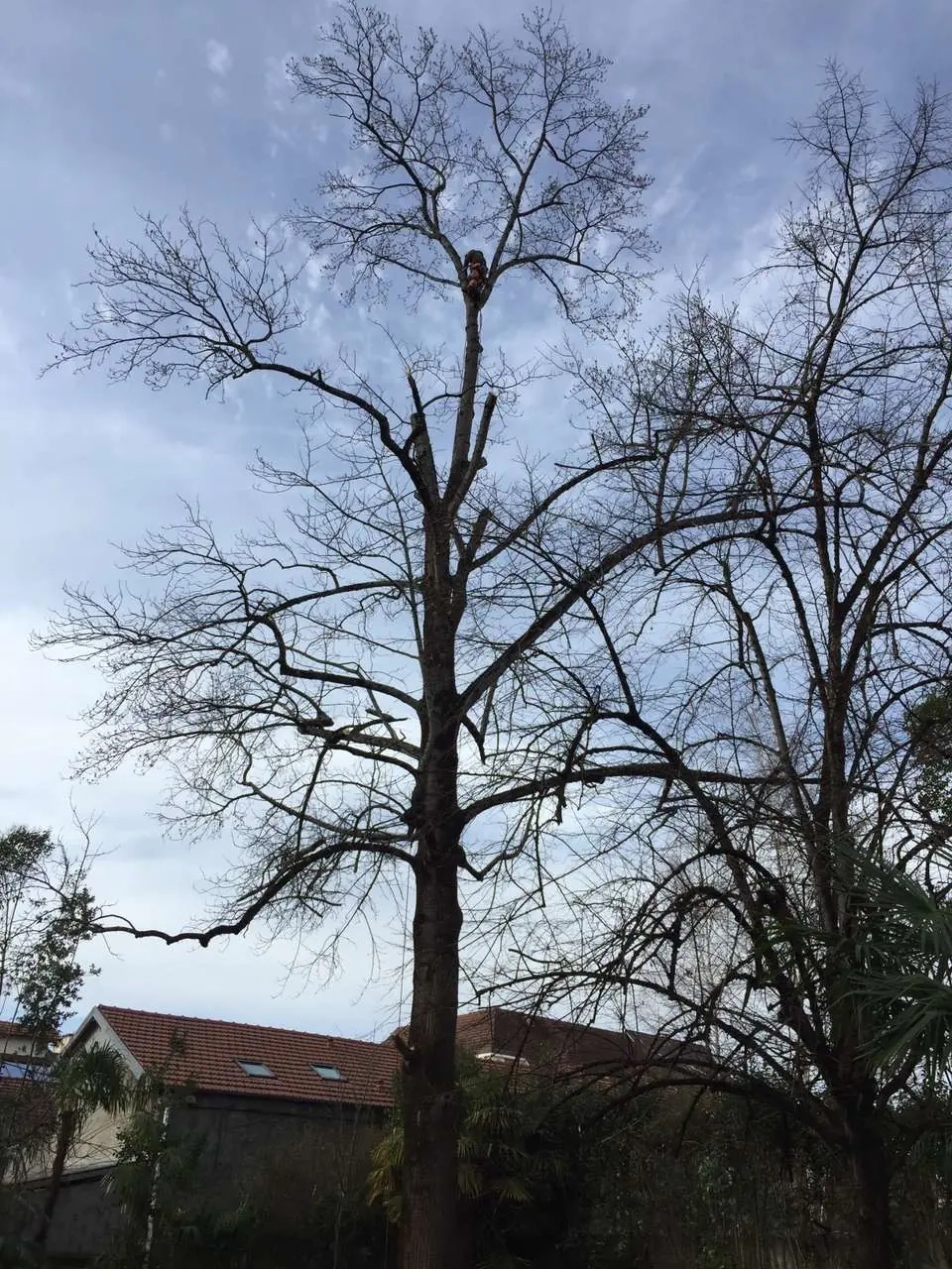 Lors de cette intervention d’élagage à Pau dans les Pyrénées Atlantiques, à la demande du client cet arbre a été raccourci de plusieurs mètres par le grimpeur.