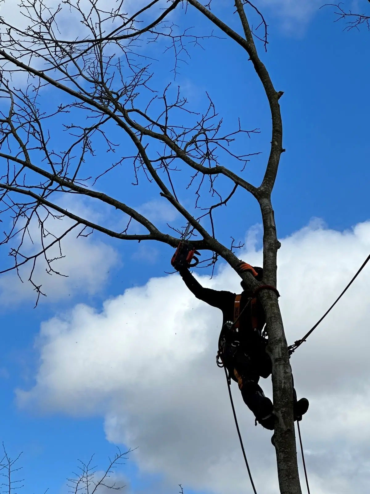 Coupe de plusieurs branches mortes et plusieurs branches encore bonnes, pour pouvoir aérer l’Arbre.
