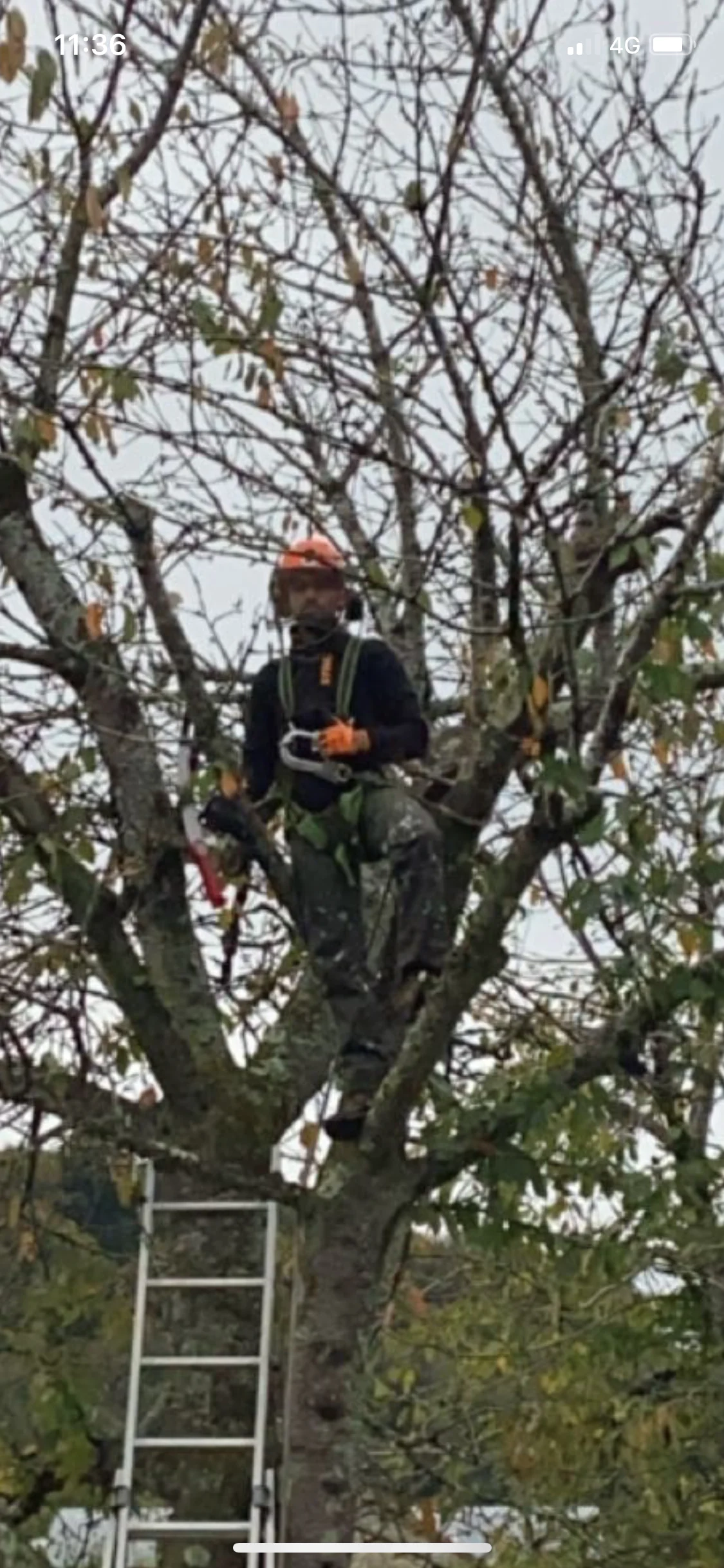 Intervention d'élagage à proximité de Pau sur un arbre fruitier et sur plusieurs autres arbres. Ils ont été élagués sur ce même chantier. Le matériel utilisé est une tronçonneuse élagueuse MS 151 stihl.